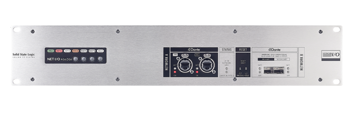 Dante es una tecnología de red de audio IP que utiliza la infraestructura informática estándar para el transporte de audio, el enrutamiento, la detección de dispositivos y el control. La capacidad de detección integrada, el control remoto de dispositivos y el funcionamiento «plug and play» convierten a Dante en la solución ideal para el enrutamiento de audio IP en la producción audiovisual, ya que garantiza la interoperabilidad con miles de dispositivos disponibles. La compatibilidad con el transporte en tiempo real AES67 y ST2110, la conmutación de protección sin interrupciones ST2022-7, PTPv1 y PTPv2 (incluido ST 2059-2) proporciona una mayor interoperabilidad en toda la gama de consolas Network IO y SSL.