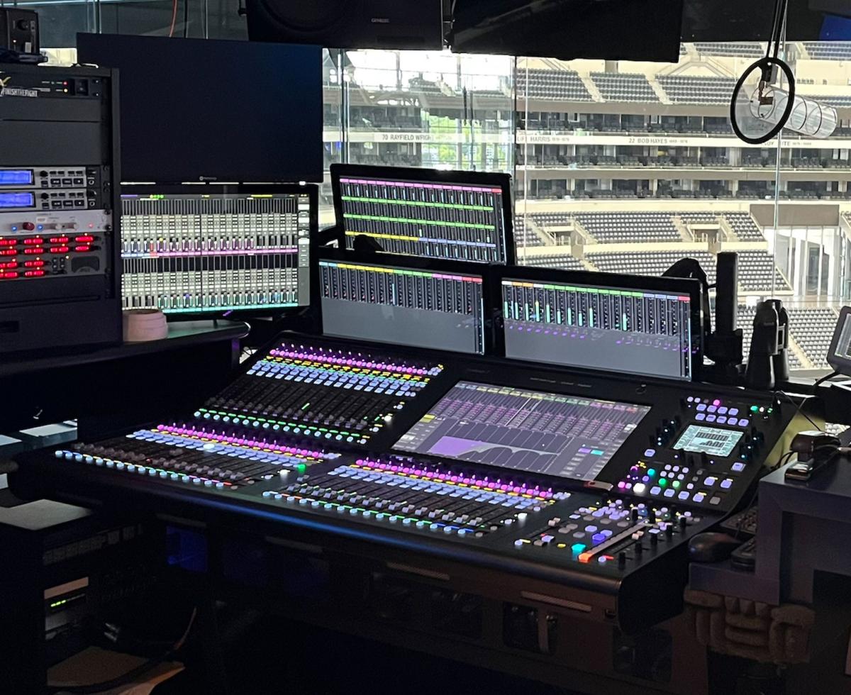 «Aparte de los partidos de fútbol americano», continúa French, «aquí tenemos una media de cuatro eventos corporativos al día. Si hay algún evento relacionado con el estadio —ya sea una fiesta, una conferencia o una feria comercial en el campo—, me encargo yo de ello. A veces viene un tercero y les envío señales de la reproducción de vídeo y las dirijo a nuestro sistema de sonido o simplemente las envío al suyo. Para los conciertos, siempre traen su propio sistema. Pero esta es la sala más grande del mundo y las gradas del cuarto nivel están muy arriba, así que suelen conectarse a nuestros altavoces de retardo superiores, y nosotros gestionamos el retardo y la ecualización durante su espectáculo. Eso se envía directamente a nuestro sistema de altavoces y también se transmite a nuestras suites».