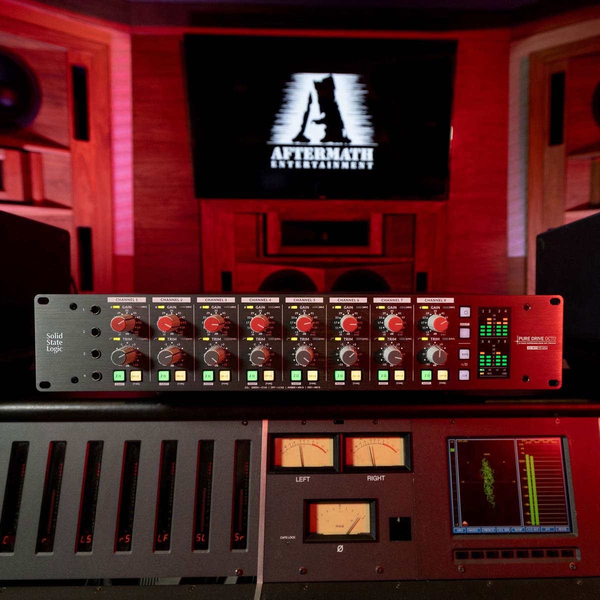 La nueva unidad de rack PURE DRIVE OCTO (también está disponible un modelo PURE DRIVE QUAD de 4 canales) incluye una tarjeta de sonido USB integrada y una sección de E/S digital y analógica flexible que facilita su integración en un flujo de trabajo híbrido. Estas completas E/S permiten a Focus y al resto de ingenieros y productores de Aftermath incorporar el sonido SSL a cualquier proyecto en el que estén trabajando, incluso cuando la consola SSL del estudio esté ocupada en una sesión. «Si pasara por una mesa SSL, podría obtener algunos de los filtros, parte del ataque y algo de calidez. Ahora puedo conseguir eso a través de mi interfaz PURE DRIVE OCTO. Me encanta; ¡creo que es fenomenal!», afirma.