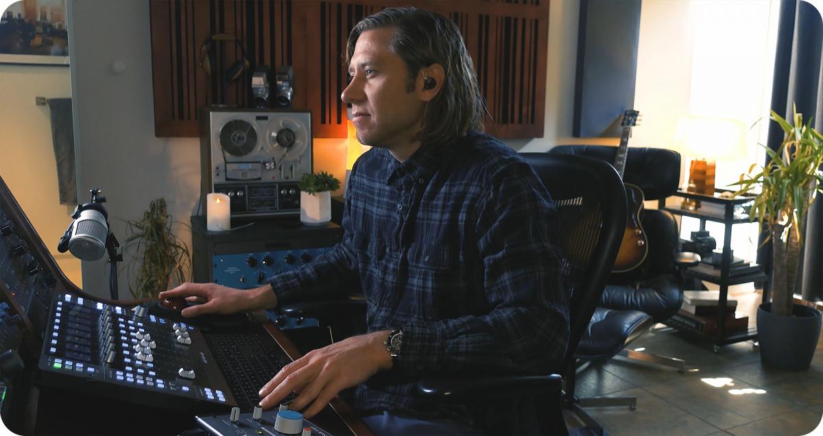 Con la mirada fija y totalmente concentrada en los matices de la interpretación, los movimientos de Marc Daniel Nelson en la UF8 son minuciosos e intuitivos. Utiliza el banco de faders táctiles de 100 mm para controlar y automatizar los niveles de las muestras de cuerdas, las secciones de viento y de cuerdas; las teclas programables para desplazarse rápidamente entre los marcadores de la pista; y los codificadores rotativos sin fin para ajustar rápidamente los niveles de ecualización o reverberación en sus plug-ins SSL Native. Con las manos sobre el UF8 y el control total, el vídeo captura a Nelson aportando una dosis perceptible de emoción a la mezcla final.