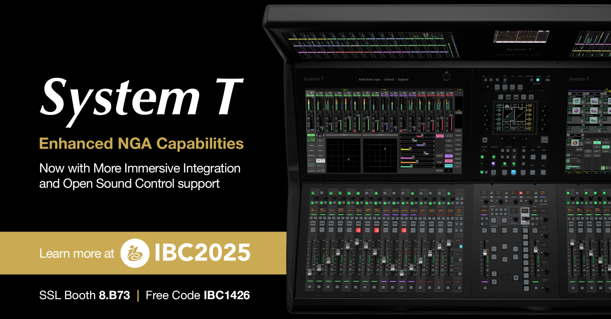 SSL también presentará en la IBC la gama System T al completo, incluidas las consolas S500m y S400, y mostrará cómo la integración con el Virtual Tempest Engine de la empresa ofrece un procesamiento de audio basado en software y nativo de la nube. Por otra parte, la nueva gama «Plus» de Desktop Tiles de la empresa amplía las funciones de control de la plataforma System T y también hará su debut en la IBC.