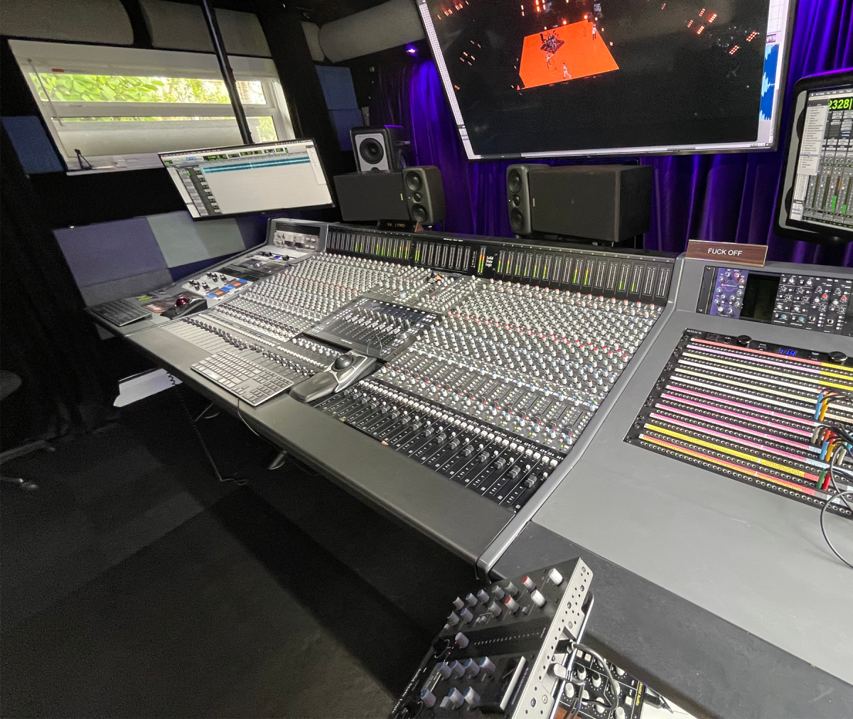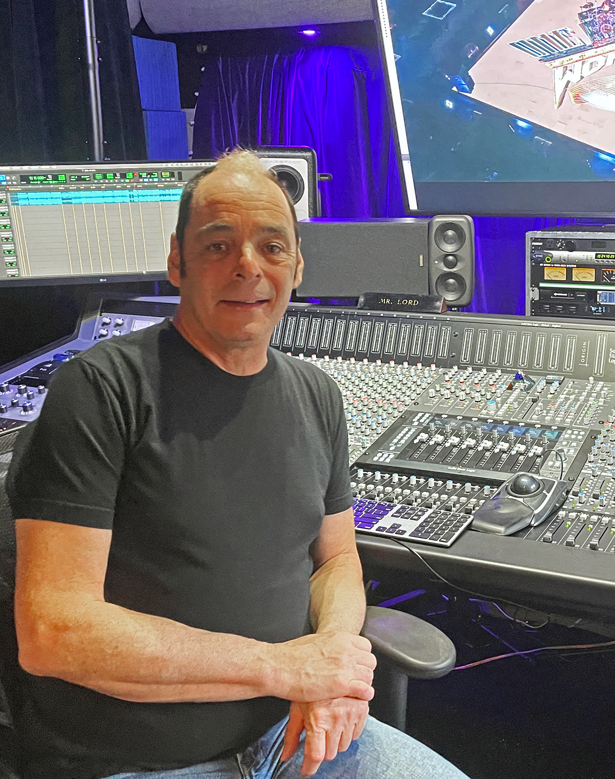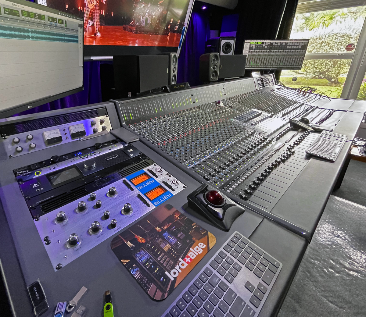 Lord-Alge adquirió su nueva mesa de mezclas tras mudarse recientemente a su nueva casa en Miami Beach: «Para ser sincero, era imposible que pudiera meter allí mi vieja SSL 4000E, así que pensé que era el momento ideal para probar la ORIGIN. Ni siquiera me planteé comprar nada más de lo que había en el mercado, porque, sinceramente, soy un fan de SSL». Su sala de mezclas, que mide 4,5 x 5,5 metros, tuvo espacio suficiente para la ORIGIN junto con dos mesas laterales Malvicino hechas a medida que adquirió para los patchbays y diversos equipos en rack.