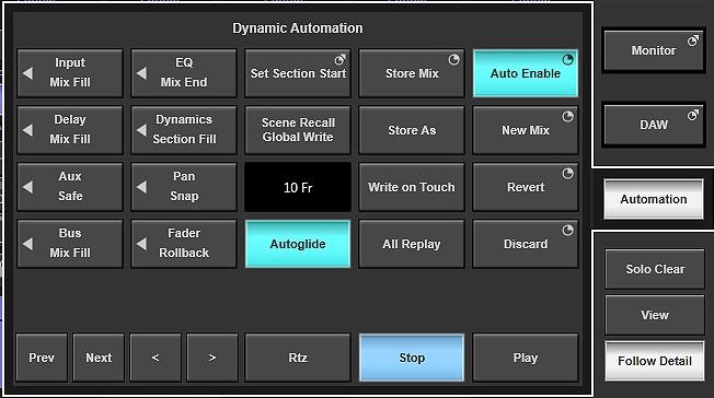 Los parámetros automatizados de la consola se almacenan junto con las mezclas en formato MTC o LTC, y se gestionan desde el sistema de archivos de la propia consola. Los faders y codificadores táctiles, junto con los controles de la pantalla táctil, ofrecen múltiples formas de escribir datos de automatización en todo el procesamiento de todos los canales y rutas de bus. Con la capacidad de grabar datos de mezcla tanto a velocidad de reproducción como con código de tiempo fijo, o al avanzar fotograma a fotograma o por marcadores, DAS ofrece el máximo control a la hora de sincronizar el audio con la imagen.