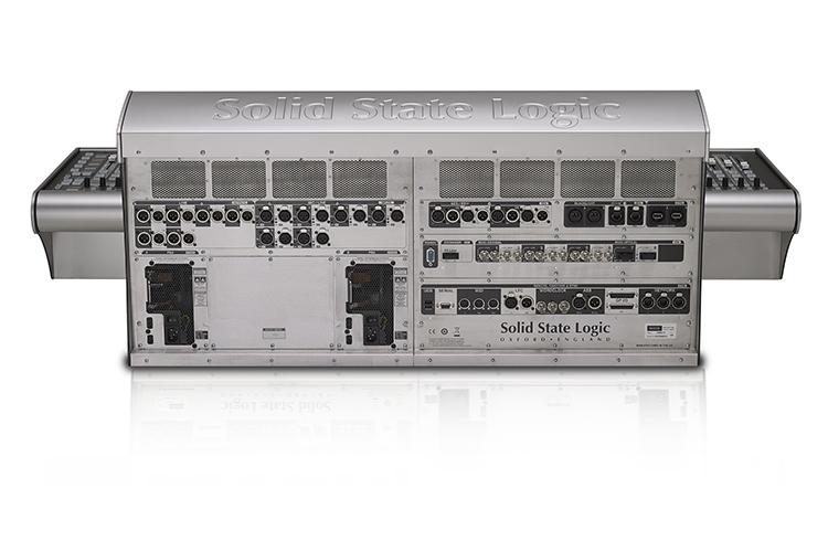 Configuración estándar de los puertos MADI: ocho puertos MADI; seis pares de cables coaxiales y dos pares de fibra óptica que pueden utilizarse de forma independiente o en una configuración redundante. Dispone de un bucle de efectos adicional y de un puerto MADI óptico independiente (salida/entrada), diseñado para conectar un dispositivo de efectos externo, como un sistema que utilice Waves Multirack o un host de efectos VST. Se puede instalar un par redundante de conectores de fibra SSL Blacklight II para proporcionar 256 canales bidireccionales a 96 kHz entre la consola y el escenario. Una tarjeta Dante local opcional proporciona 32x32 canales de E/S a 96 kHz a través de una conexión Dante redundante. La interfaz Dante ofrece conversión de frecuencia de muestreo entre todas las velocidades de red Dante. Un par redundante opcional de conectores SSL X-Light proporciona 256 canales bidireccionales a 96 kHz entre la consola y el escenario mediante un único cable con conectores reforzados. El panel trasero también alberga conectores para MIDI, LTC, Wordclock y E/S GP. Se incluye de serie una segunda fuente de alimentación redundante.