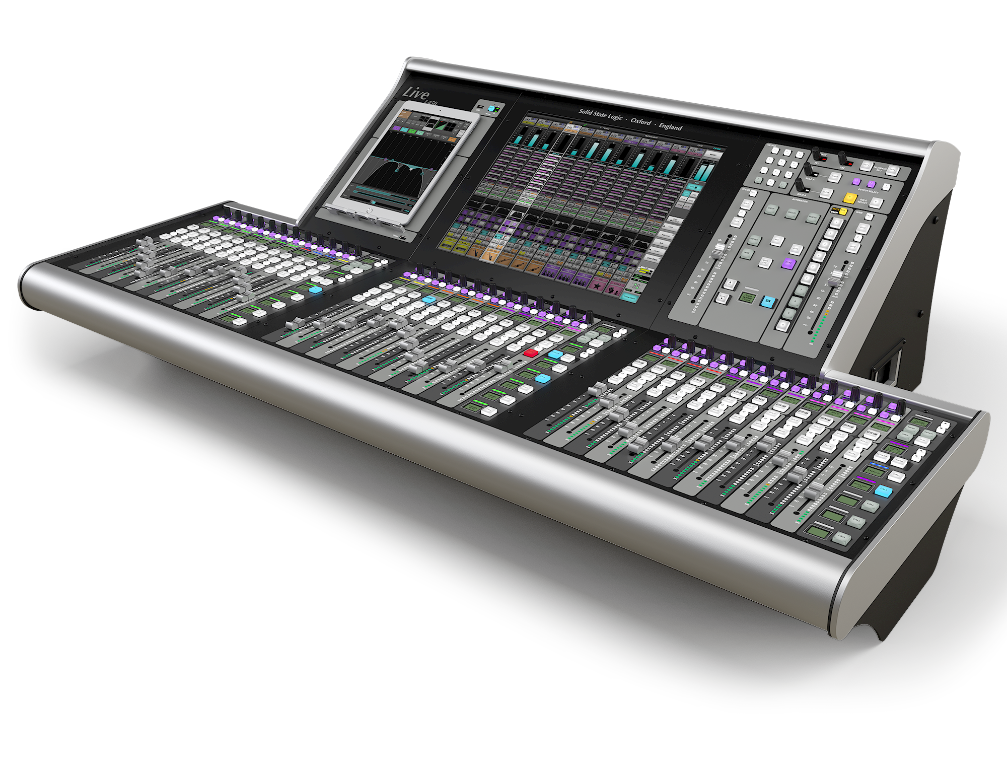 Las tabletas permiten controlar mediante pantalla táctil el procesamiento de canales y el procesamiento del rack de efectos a través de la aplicación de control para tabletas SSL TaCo. La L450 cuenta con un soporte específico para tabletas situado alrededor de la pantalla multitáctil de 19 pulgadas, lo que mantiene la visualización centrada en la línea de visión del operador.