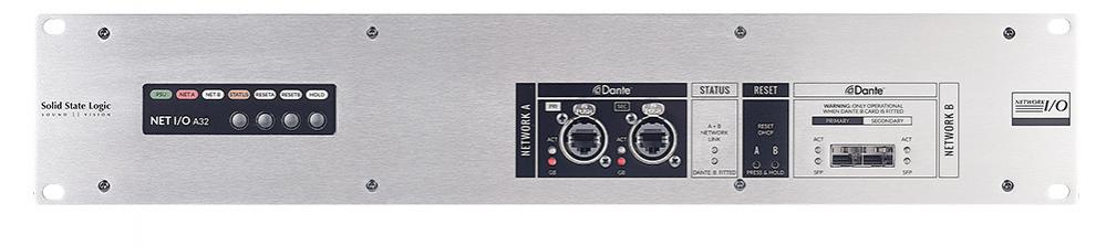 Entradas y salidas analógicas de línea en masa: el A32 ofrece entradas y salidas SSLSuperAnalogue™ para redes IP basadas en Dante y AES 67. El A32 incluye conexiones de red* y fuentes de alimentación redundantes. Cuenta con 32 entradas de línea y 32 salidas de línea.*La conectividad de red B ofrece una vía de actualización de hardware futura para la conexión directa por fibra SFP.