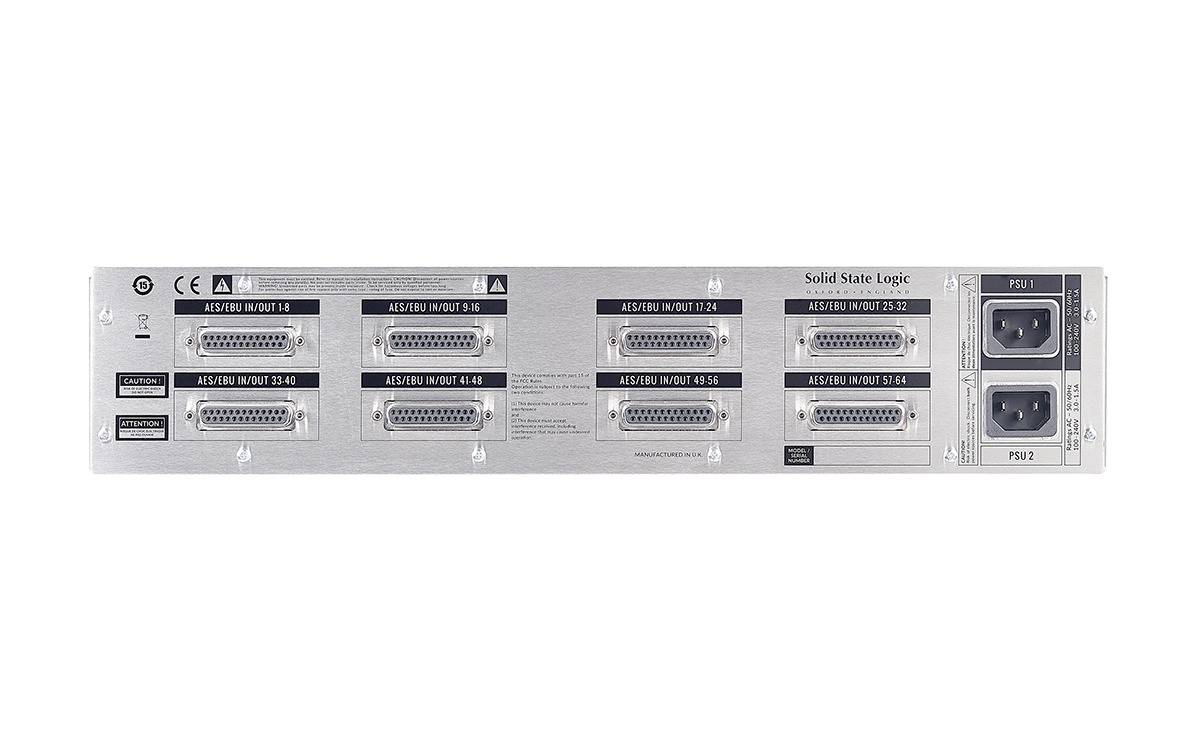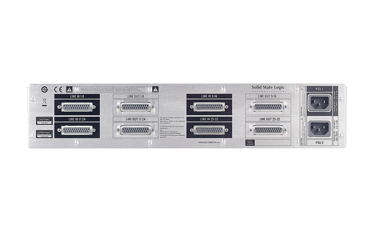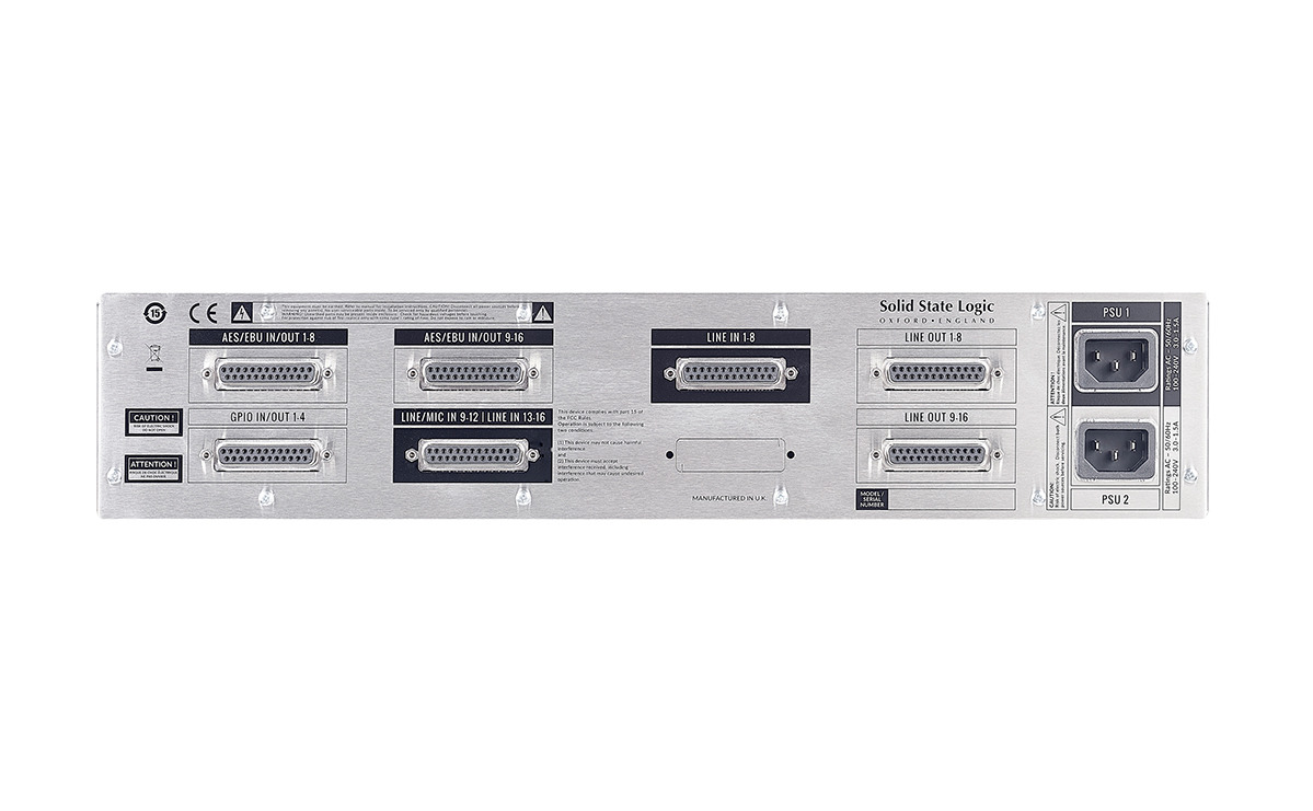 • 16 entradas de nivel de línea (incluidos 4 preamplificadores de micrófono SSL SuperAnalogue conmutables).