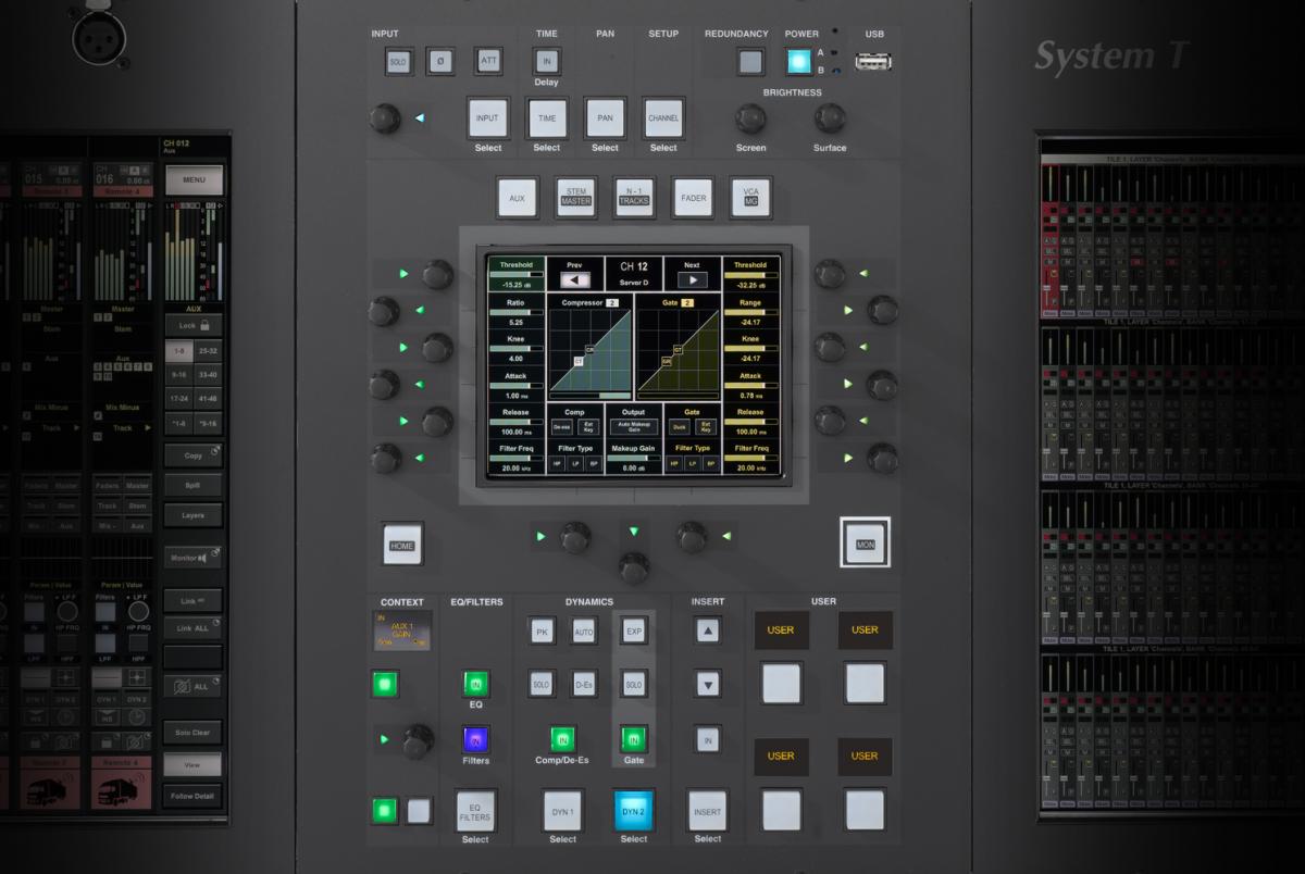 La superficie de control S500 adopta un enfoque modular. Ofrece una gama de pantallas táctiles y módulos de hardware que se pueden combinar con un puente de medidores opcional, dentro de una colección de bastidores de consola, para crear un sistema de control totalmente escalable.