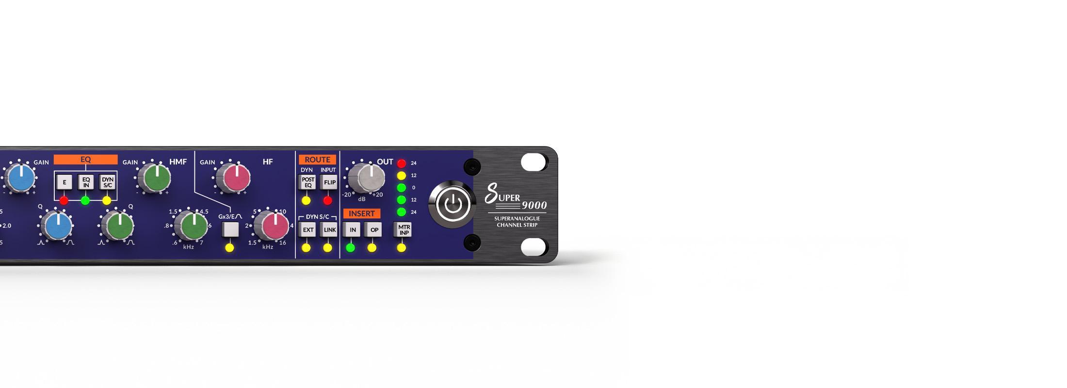 El Super 9000 es el canal analógico «todo en uno» de Solid State Logic, que combina lo mejor de la tecnología SuperAnalogue™ para ofrecer el sonido SSL moderno. Presentado por primera vez en el legendario SL 9000 J y perfeccionado en el Duality, el canal Super 9000 ofrece la distorsión ultrabaja, el impacto excepcional y la claridad impresionante de nuestras consolas de estudio SuperAnalogue™ en un formato de 1U.