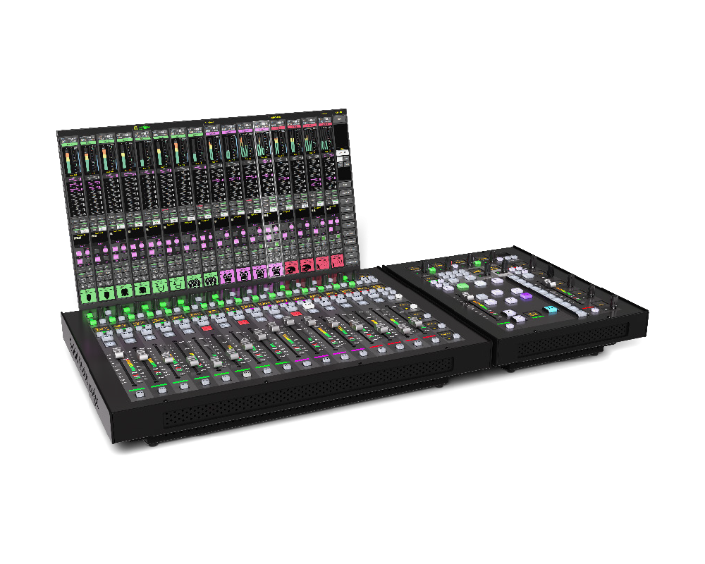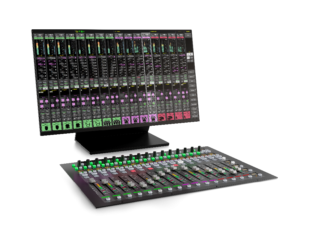 • Funciones avanzadas de los paneles de faders, que incluyen faders de alta gama, pantallas OLED específicas para cada canal y medidores de nivel avanzados, así como LED de estado​
