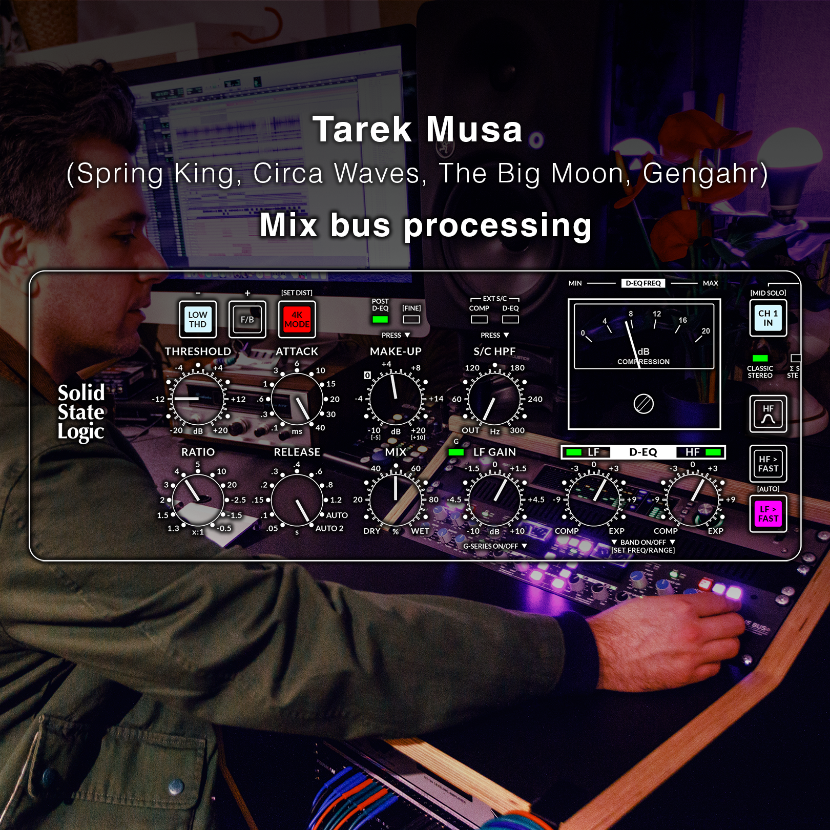 Andy Jackson, director de producto de SSL Studio, te ofrece una descripción detallada y un tutorial sobre THE BUS+, que abarca la configuración, el funcionamiento del equipo y ejemplos de audio.