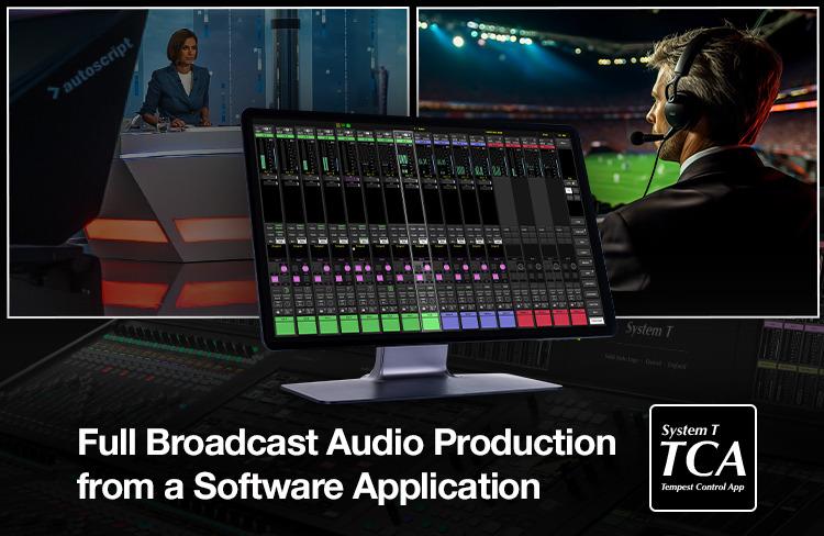 La aplicación Tempest Control App (TCA) ofrece una solución ideal para entornos de radiodifusión en los que se necesita un potente mezclador de audio profesional, pero no una consola tradicional. Tempest Control App integra todas las funciones de System T en una aplicación de software que permite el control directo de los Tempest Engines. Esto incluye control directo del enrutamiento AoIP, compatibilidad nativa con audio inmersivo basado en objetos y canales, procesamiento de efectos integrado, control de DAW, licencia opcional de automatización dinámica y mucho más.